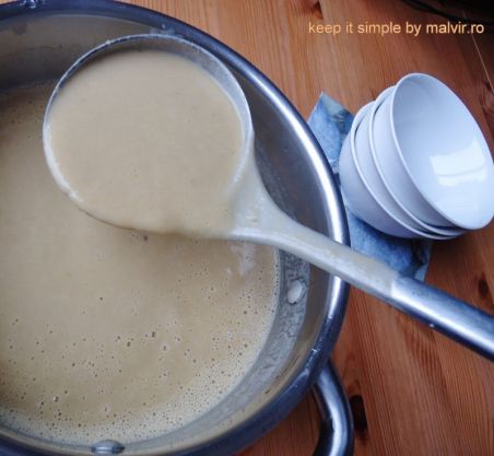 !!! Cand este gata supa, se scot afara crenguta de rozmarin si frunzele de dafin (atentie – sa iasa la numar).