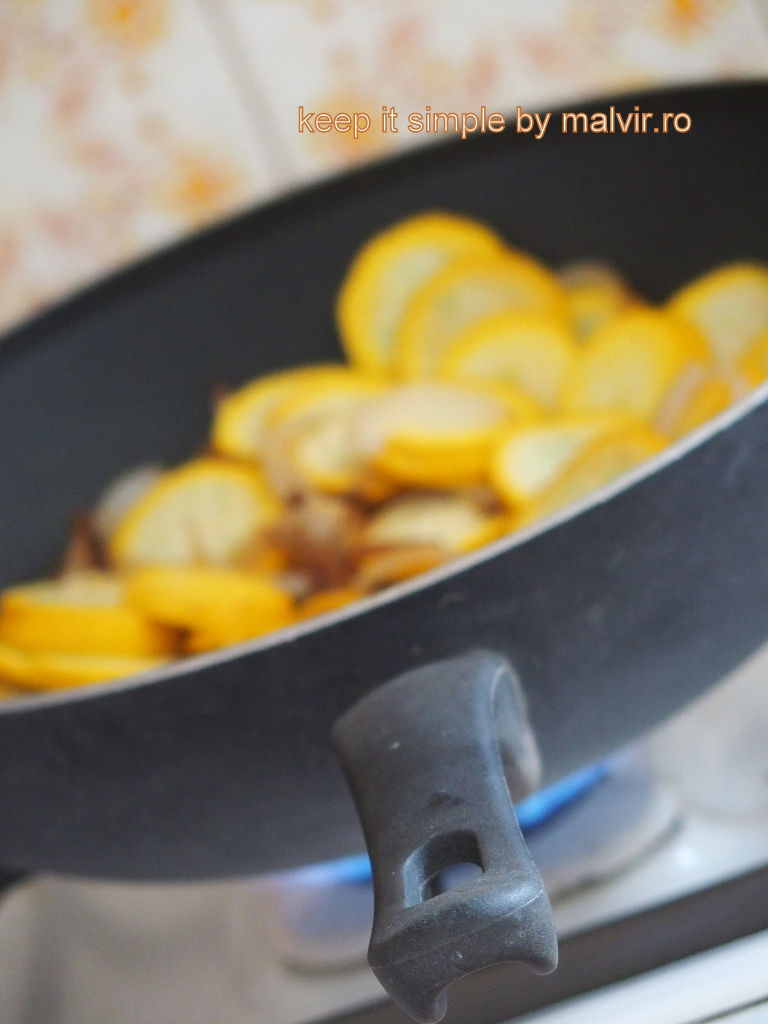 – 2 zucchini galbeni sau verzi (de aproximativ 500 g) taiati rondele