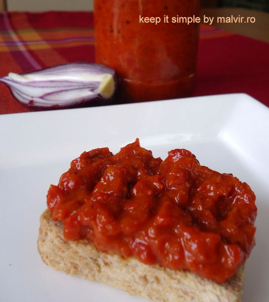 Si aceasta zacusca este preparata doar din ingrediente biologice, este mai putin grasa si nu contine uleiuri rafinate. O varianta sanatoasa si gustoasa!