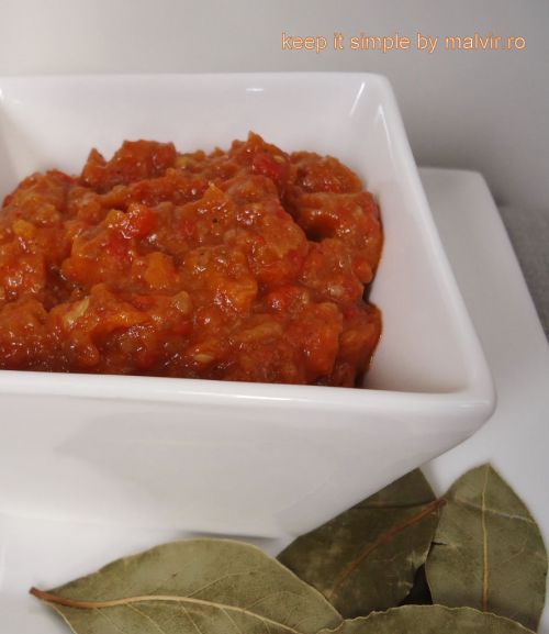 La fel ca zacusca de vinete, si aceasta zacusca este preparata doar din ingrediente biologice, este mai putin grasa si nu contine uleiuri rafinate.