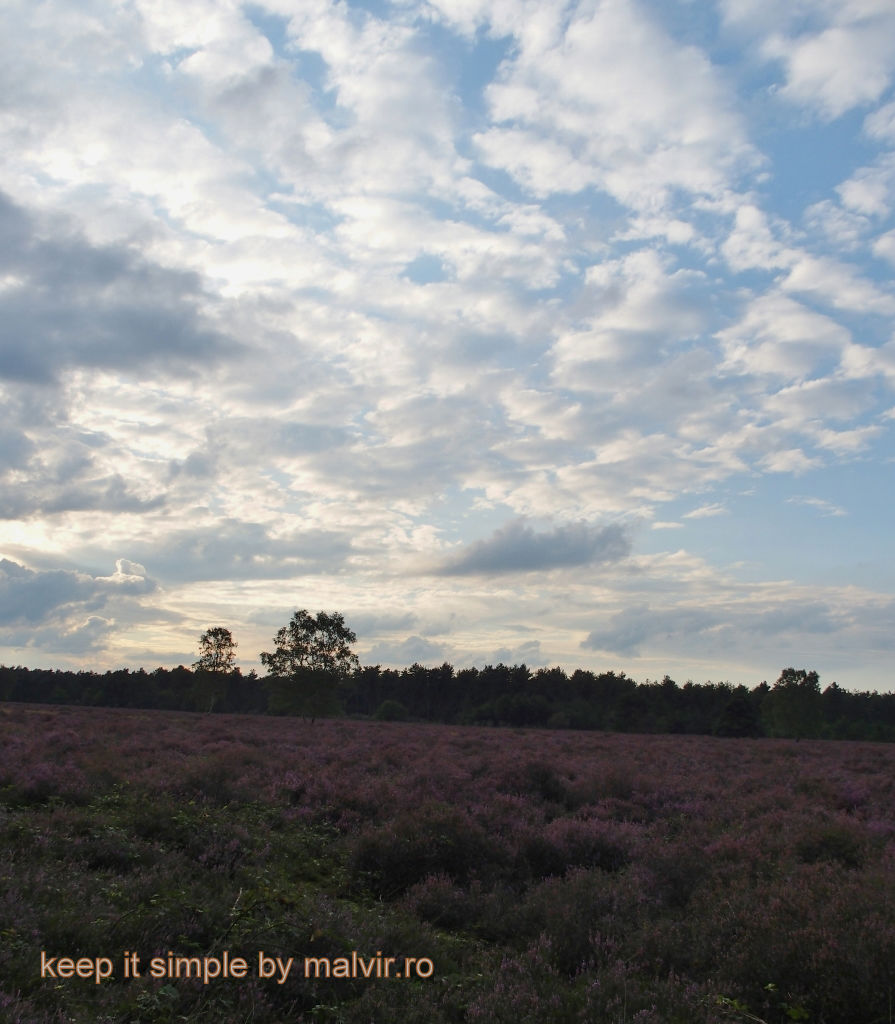 Intr-o parte a acestui loc creste un camp imens cu niste arbusti de culoare mov care infloresc doar vara tarziu spre toamna si seamana oarecum cu lavanda. Sunt niste arbusti care traiesc in tarile cu climat umed, cu temperaturi nu foarte ridicate si sol nisipos. Nu am gasit denumirea lor in romaneste asa ca o sa le spun pe nume – Heide.