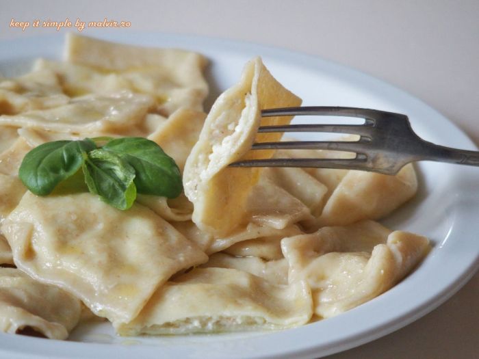 Cu alte cuvinte ”ravioli cu branza si busuioc”, aceste paste sunt preferatele juniorului meu. De cele mai multe ori ii place lui insusi sa le prepare, asteapta cu nerabdare sa fiarba, le devoreaza apoi cu mare pofta pentru ca…sunt ”pernite cu branza” de casa. Ravioli este un nume prea complicat, ravioli se serveste doar la restaurant….iar noi facem ”pernite” de casa.