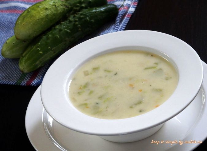 Supa se poate prepara folosind atat castraveti mici care se cultiva la noi in gradina (Kirby – un soi aromat si gustos) cat si cu castraveti lungi (castravetele englezesc – cu o savoare mai redusa decat celalalt sortiment).