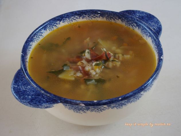 Si daca tot am vorbit despre Alpi, am cautat si reteta faimoasei supe de orz. Am gasit mai multe variante dar dintre toate, aceasta mi s-a parut mai gustoasa deoarece contine mai multe tipuri de legume. Trebuie sa recunosc insa ca gustul final este dat de sunca prajita care se adauga in supa.