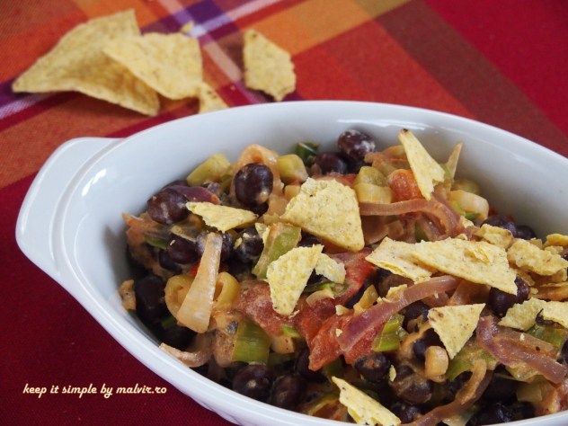 Se serveste cu chipsuri de porumb si optional cu smantana si sos chili. Enjoy!