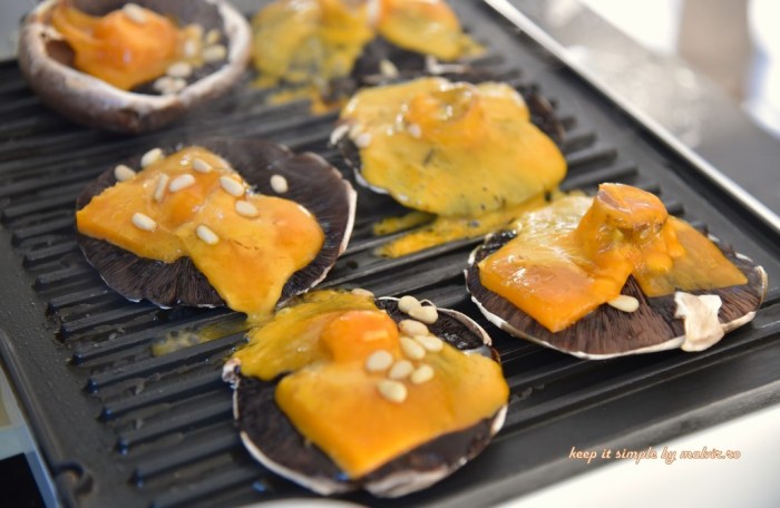 Nu au lipsit nici ciupercile umplute cu branza dar de data asta am folosit branza cheddar in loc de gorgonzola. Se pot servi atat calde cat si reci.
