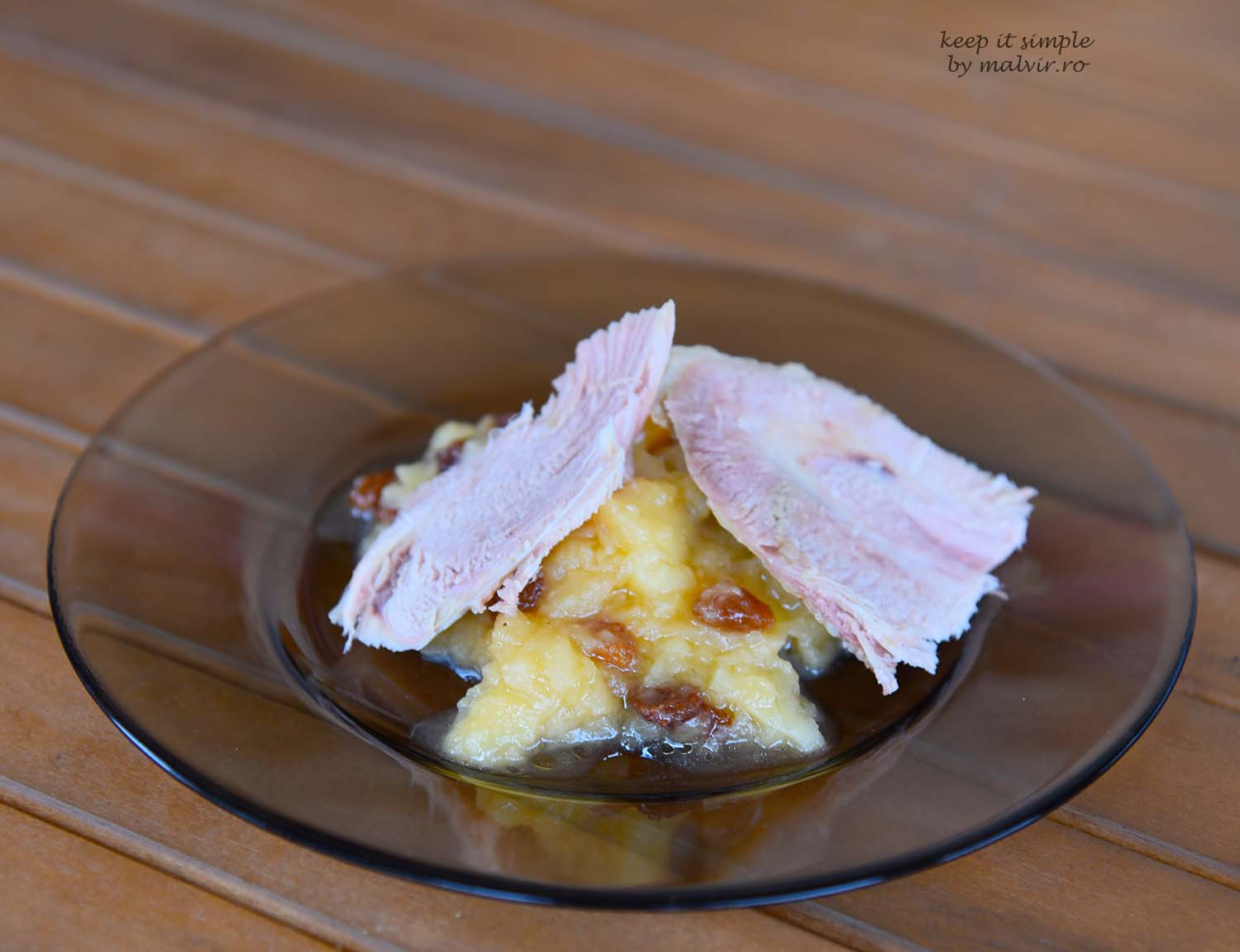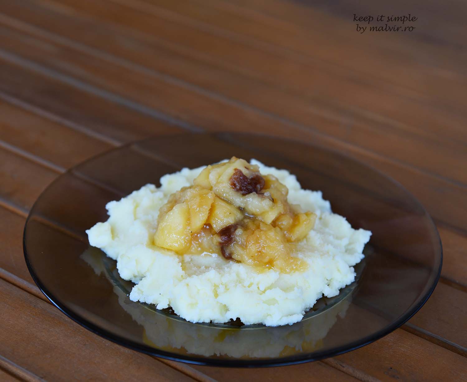 Serviti cu carne de curcan, cu piure de cartofi (cateva retete pe baza de piure AICI) sau cu orez cu lapte. Simplu.