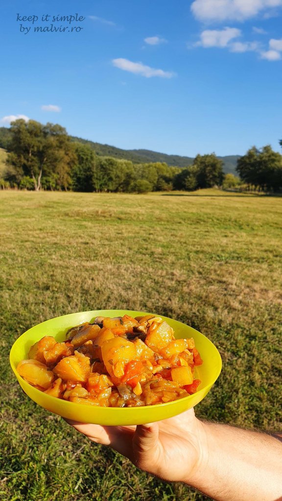 Un alt tip de mancare pe care l-am incercat la ceaun este mancarea de boabe (reteta AICI). Este absolut delicioasa chiar daca partial se prepara cu boabe din conserva (eu am incercat-o in drumetie, pe munte)